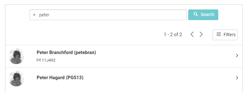 This page has a search bar similar to Member Management where you can search for a specific member by Name, Username, or Scancode. Once you see the member in the results, click their row to select them for your check-in record.