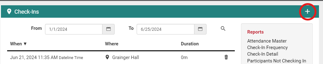 There may be times when you find yourself needing to submit a check-in on behalf of a member. There are a few spots in the staff interface where you can do so.