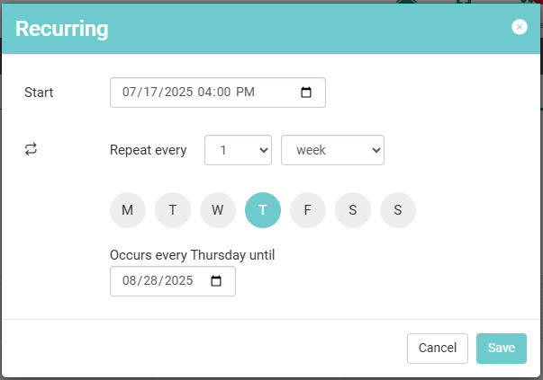 Appointments can be scheduled on a recurring schedule based on a few different criteria.