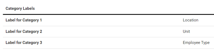 You can see the category labels on your site if you go to Config, select Configurations, then select the Categories tile and view the active configuration.