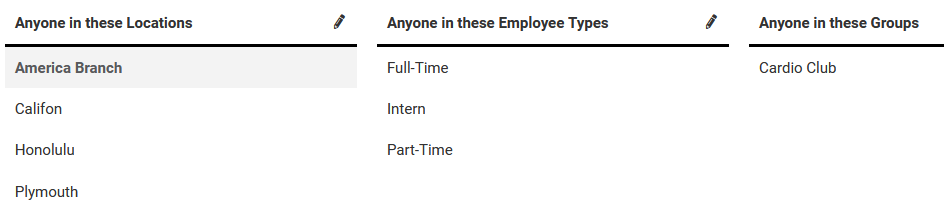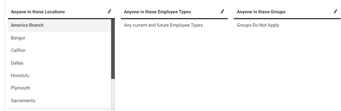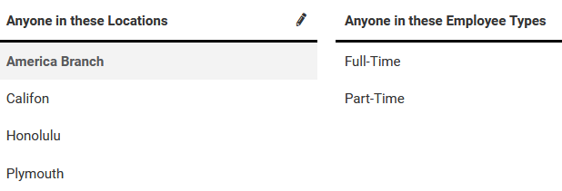 This article refers to Location and Employee Type for two of the population categories. Depending on your site's Category settings, your category labels may differ from the article.