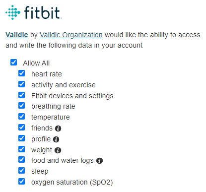 When you are connecting to an app, some will allow you to select which data to allow Motivation Alliance to access.