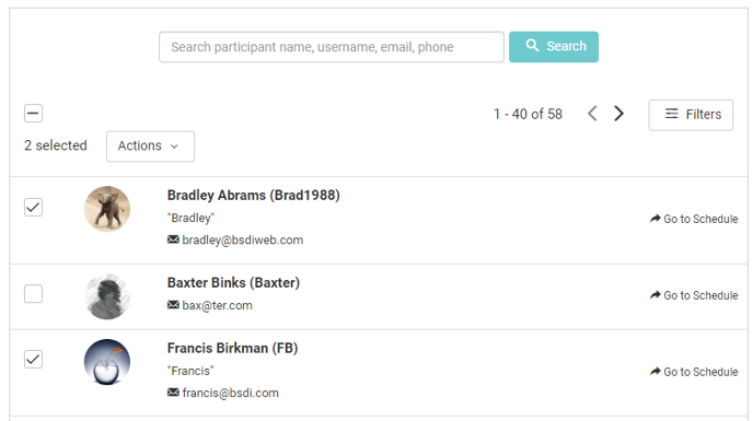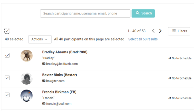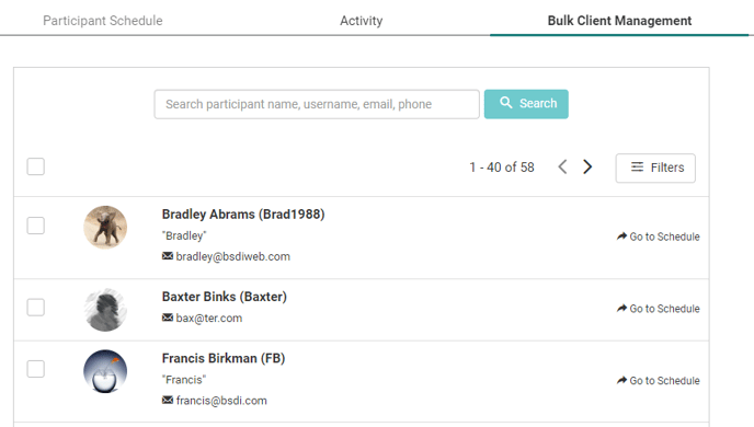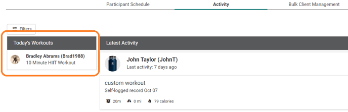 Selecting Go To Schedule from a member's row will take you to the Participant Schedule tab for that member and display their workout calendar.