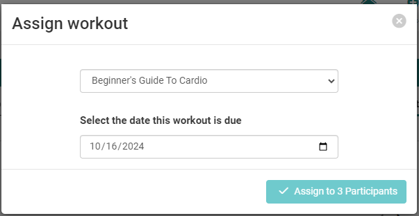 - Assign workout: Schedule a saved workout for the selected members. The workout can be scheduled on today's date or a future date.