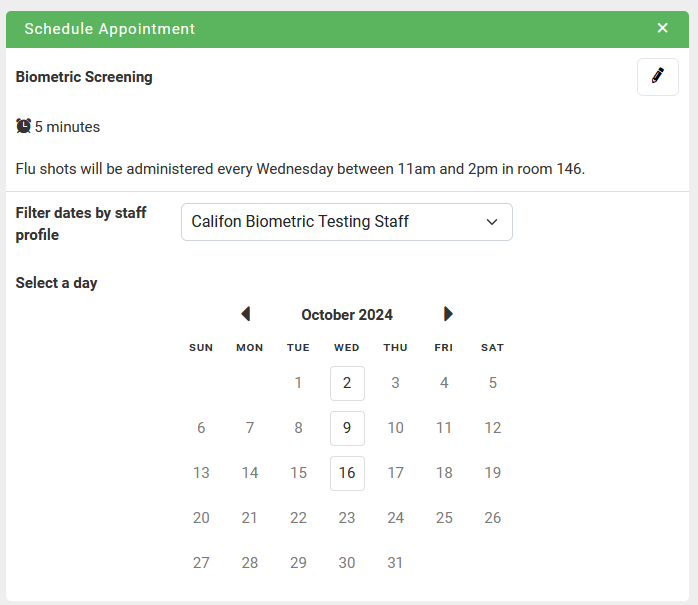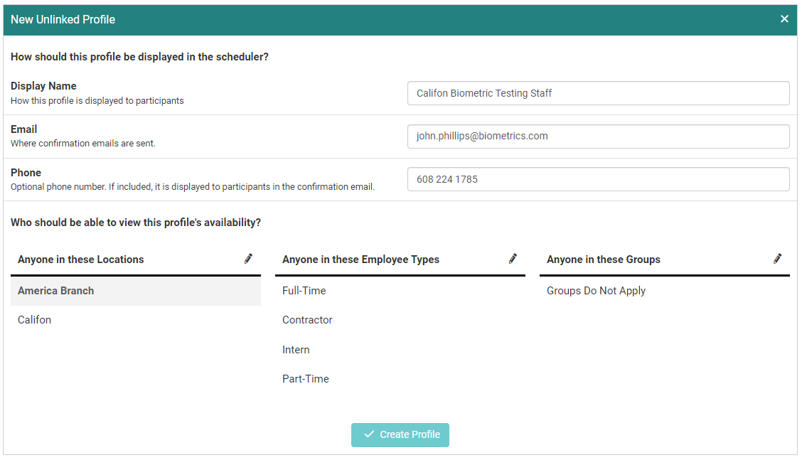 - A biometric screening company will be doing onsite testing. They don't have a staff account. Create an unlinked profile to represent the company and set the schedules within the unlinked profile.