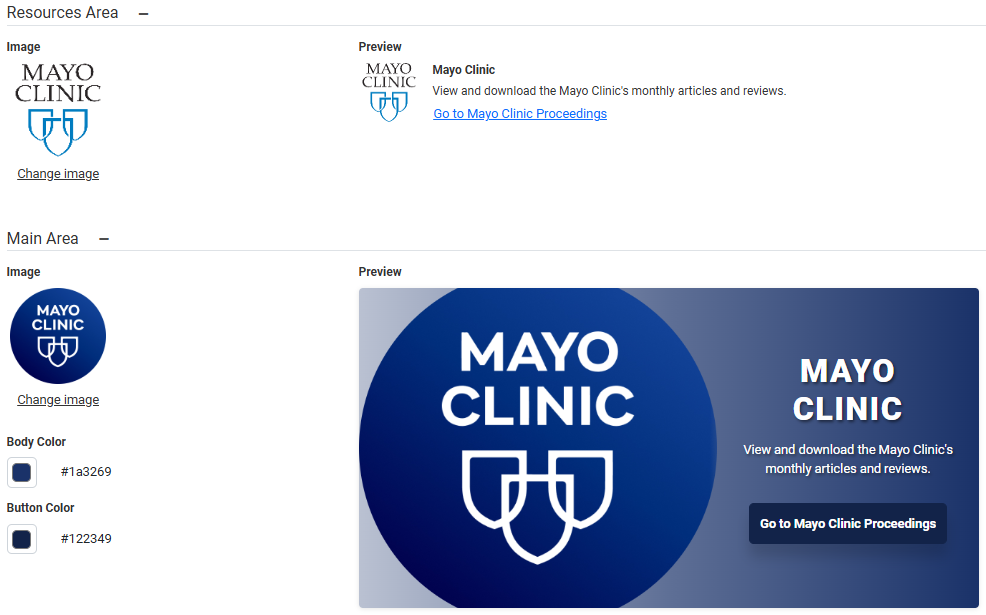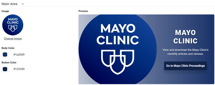Note: When you upload an image, these colors are automatically generated to match the image you selected, but these can be updated.