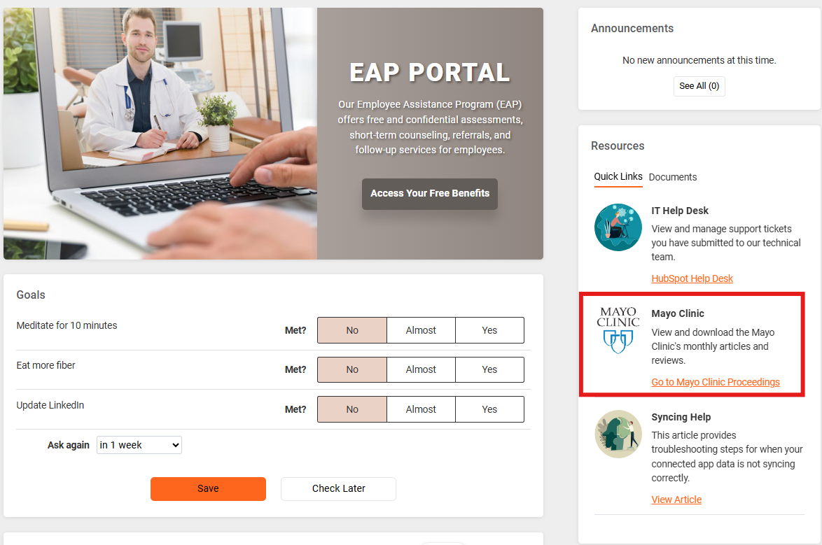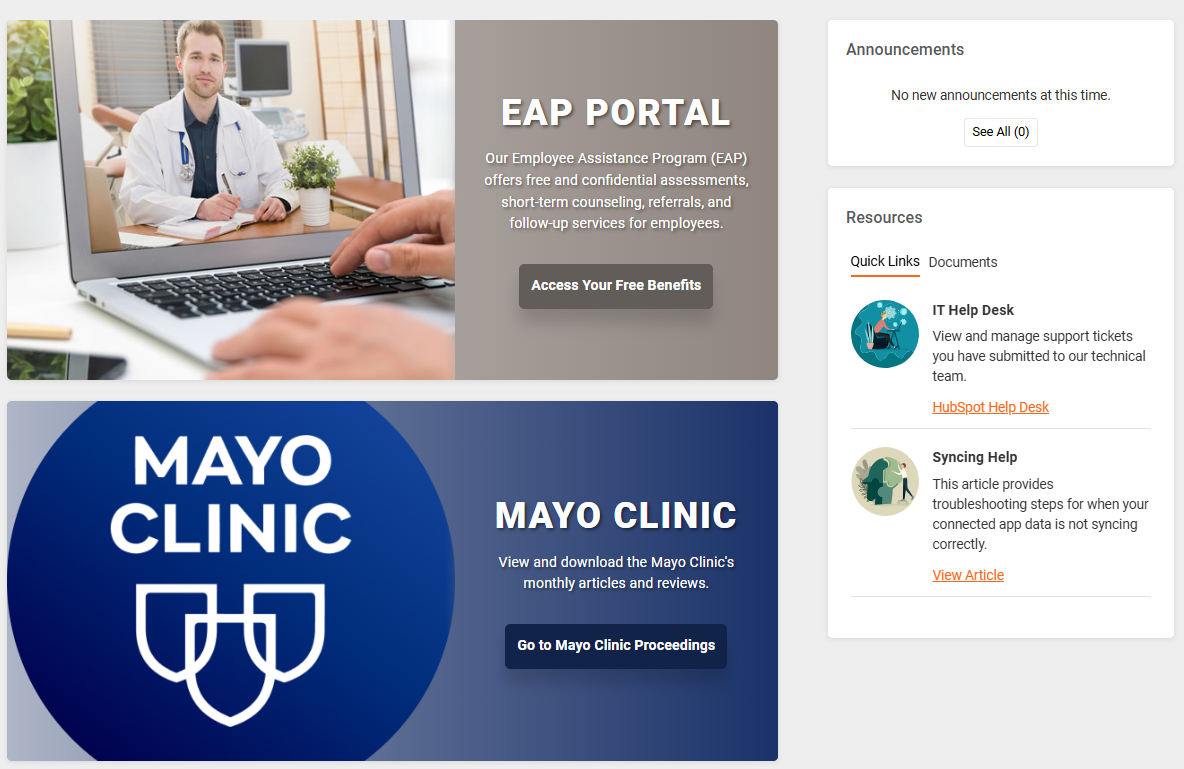 Links added for the Resources Area will appear on the right side of the participant Home page in the Resources section.