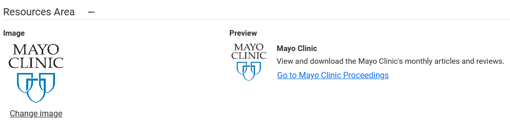 The only option you need to add for a Resources Area link is an image.
