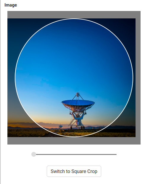 If you choose to upload your own image, you can zoom in and out of the image to resize it, as well as switch between square and circle cropping.