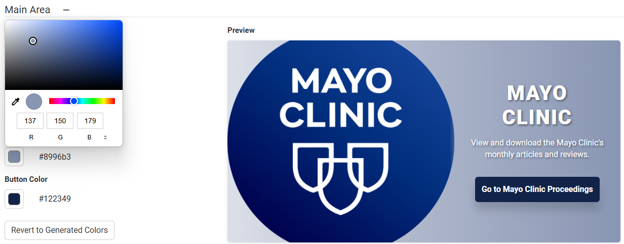 You can select Revert to Generated Colors to return to the colors automatically picked when the image was uploaded.