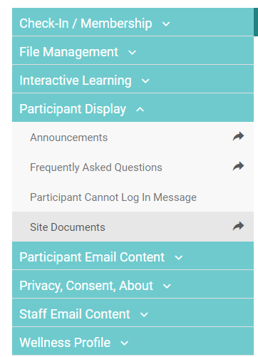Several different site content sections can be customized, ranging from automated emails to content displayed on different participant interface screens.