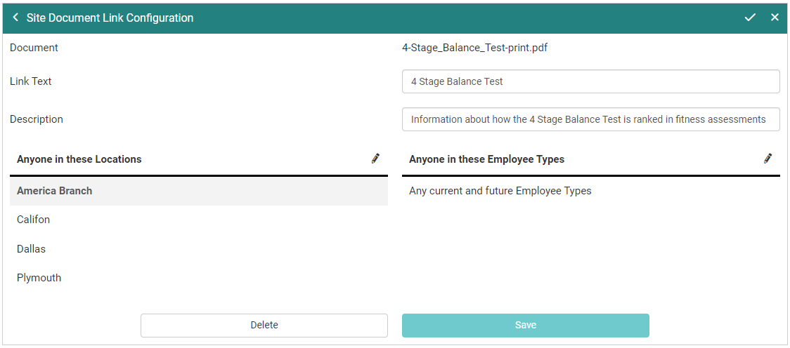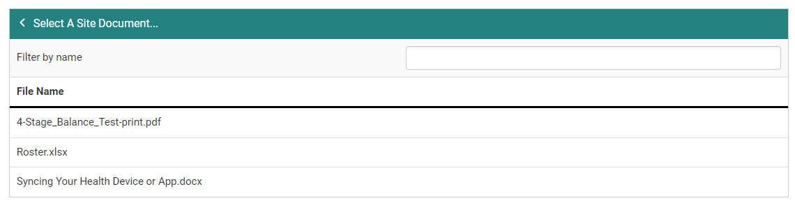 From the Site Documents page, you start by selecting a document.