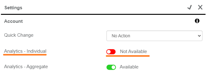 Note: You can turn on the Analytics - Individual setting for an inactive account, but this sets the Billable status to Yes, meaning this member will be counted towards your database size, even if they are not actively using the platform.