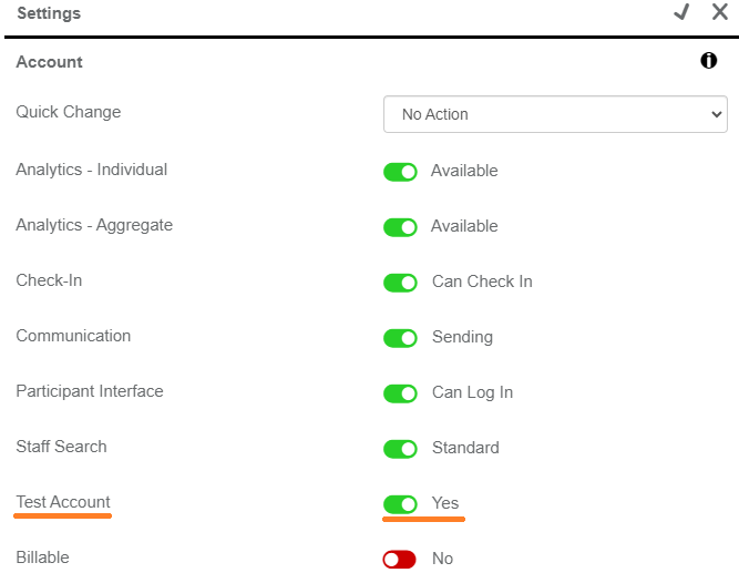 - You can check whether or not a member's account is a test account in Member Management on the Status tab of the Profile page.
